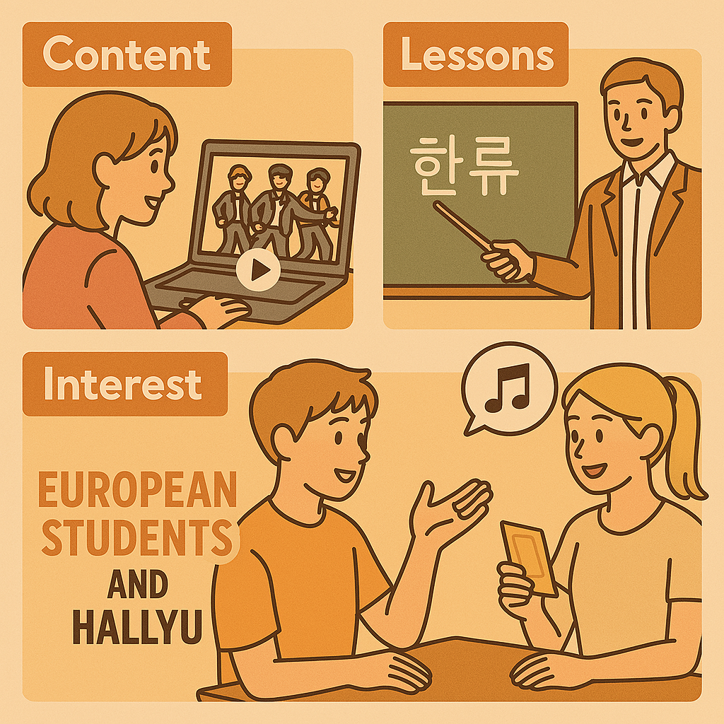 최근 몇 년 사이, 프랑스, 독일, 스페인 등 유럽 주요 국가의 학교에서는 K팝을 비롯한 한류 콘텐츠가 수업에 활용되는 사례가 증가하고 있습니다. 한국의 음악, 드라마, 영화 등은 학생들에게 신선한 흥미를 제공하며, 특히 한국어 수업이나 문화 수업에서 효과적으로 접목되고 있습니다.