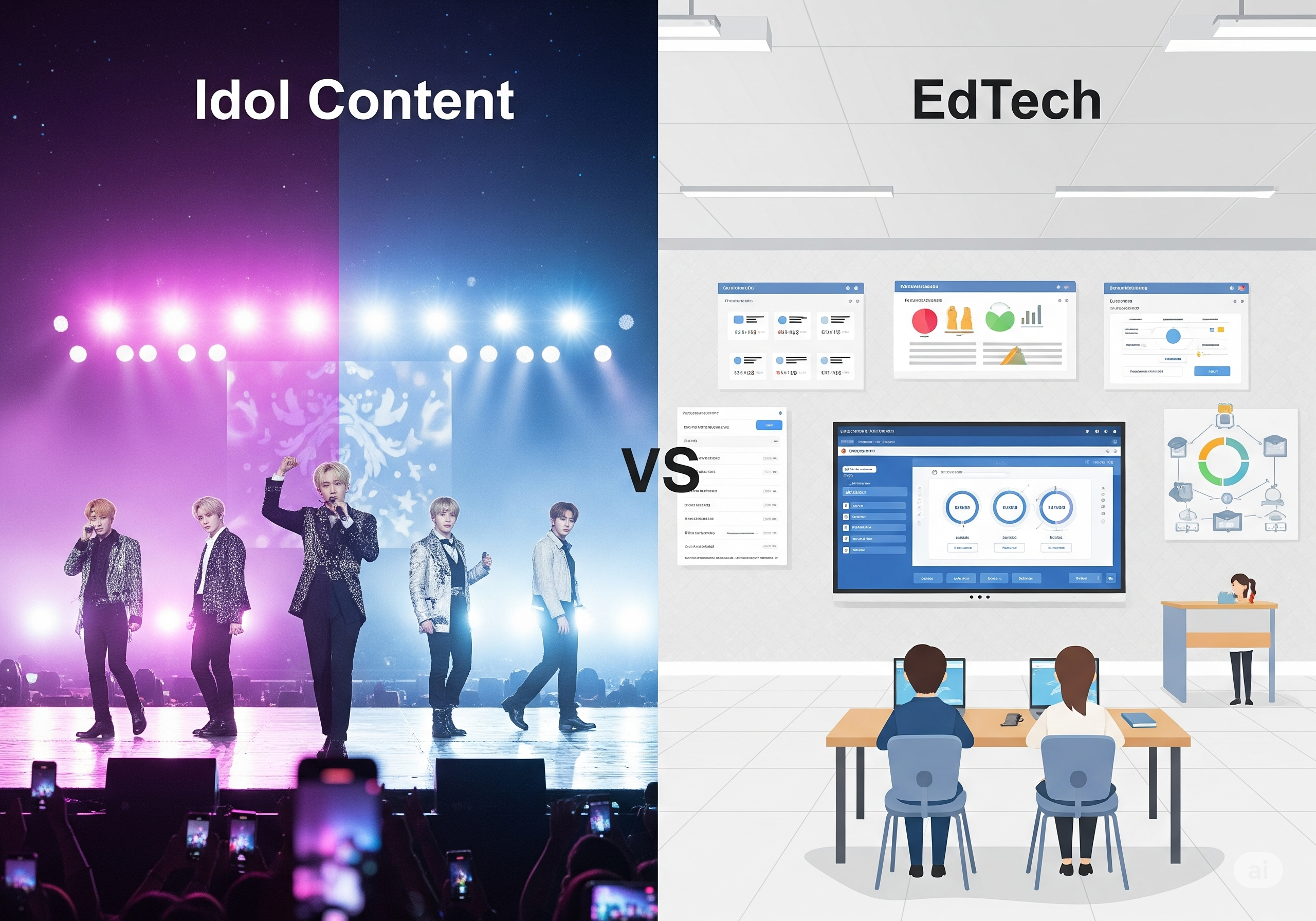즉, 아이돌 콘텐츠는 감정적 몰입을 통한 ‘능동적 참여’, 에듀테크는 기능적 설계를 통한 ‘목표지향 참여’로 성격이 다릅니다.